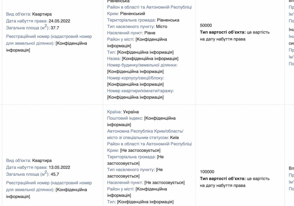 Before her appointment in 2024, she worked as the director of the LLC "IA ’This is Rivne, my friend’". This is where interesting aspects arise after the woman left her position in the State Fiscal Service. In her declaration, she stated that her husband was Andriy Khotenko. And this Mr. Andrii from Rivne only stated that they have an apartment in Feodosia in annexed Crimea. No other information about renting property in Rivne was specified.