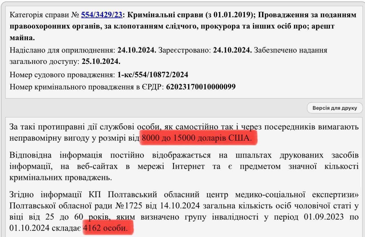 The cost of obtaining disability status in the Poltava region ranges from 8,000 to 15,000 dollars. This is the amount demanded by officials from the MSEC and MMC.