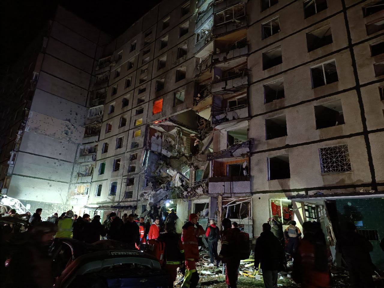 The State Emergency Service publishes photos from the site of the strike on the high-rise building.