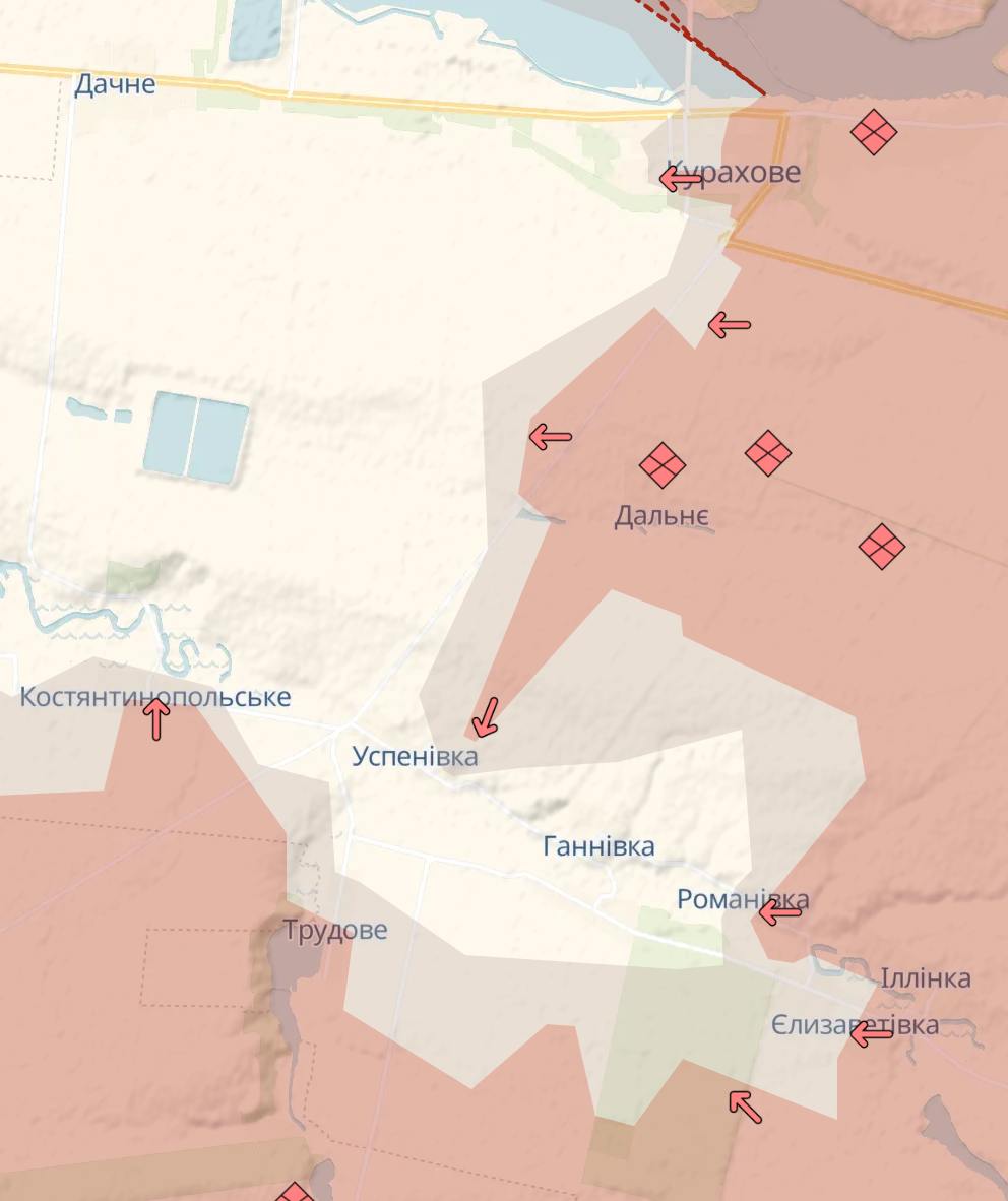 "If it is still possible to get out of Uspenivka, it will be difficult from Annivka; I think the soldiers will get out, the situation is the most difficult! Plus, the battles for Konstyantynopilske continue. The enemy is in the eastern part of the village, and our equipment is working on it," writes Muchnyi.