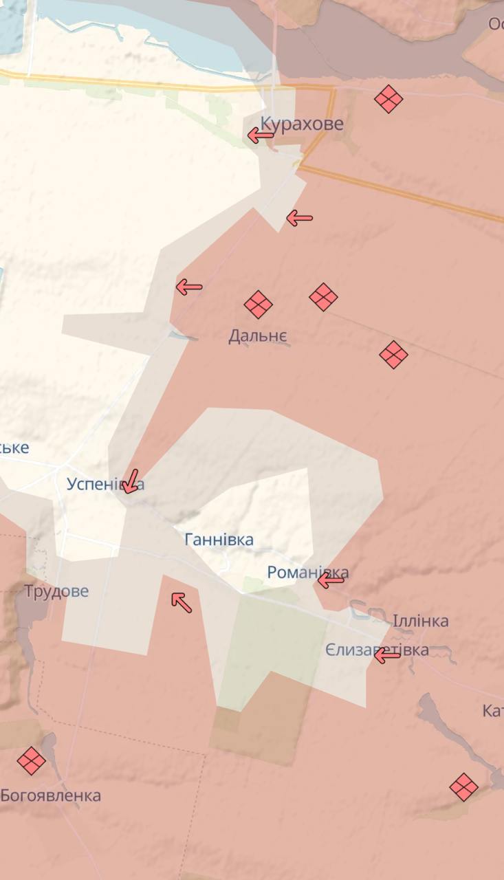 "At this moment, the units of the Armed Forces of Ukraine involved in defensive actions on this section of the front are selflessly repelling attacks by Russian forces in the area of the settlements of Uspenivka, Annivka, Trudove, Romanivka, and are taking necessary steps to prevent their capture or encirclement by the enemy," the statement reports.