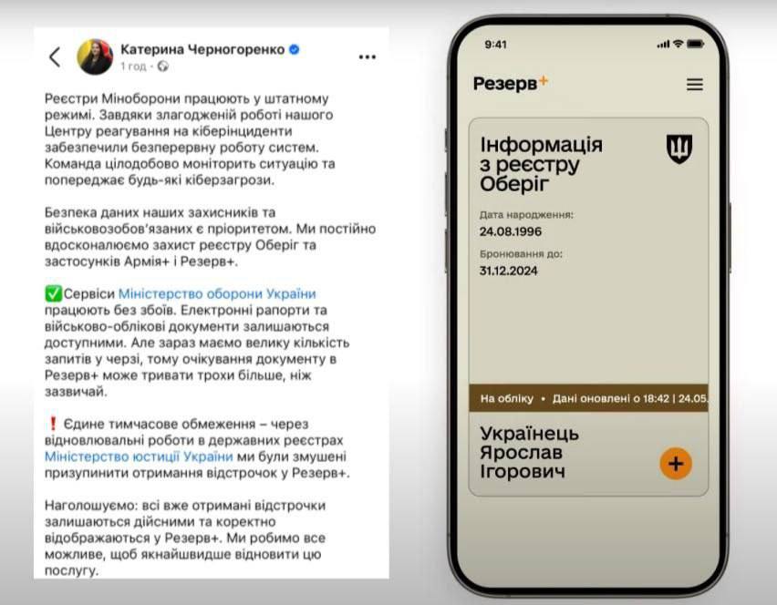 Chernohorenko also emphasized that all already received deferments remain valid and are correctly reflected in Reserve+. The Ministry of Defence is making every effort to restore this service as soon as possible.