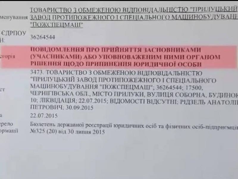 Why "to saw" the plant? Elementary, Watson, we take the income for ourselves, and hang the expenses on the state. Dubil and Averyanov created companies, including one of the same name, OOO Pozhspetsmash. Later, with the participation of the management of the state enterprise, they re-registered the technical documentation for the production of special equipment at OOO Pozhspetsmash. Moreover, the price of this documentation was ten times lower than its real cost. Then Dubil and Averyanov re-registered the machines and other means of production to another company. Only empty premises remained at the state enterprise. And who needs them in the production area of the city of Priluki? Then, of course, it is necessary to hide the traces of illegal activity. For this purpose, a number of unprofitable contracts were signed: raw materials were bought expensively, sold cheaply. And as soon as a debt arose, they immediately went to court with a claim to declare the enterprise bankrupt and liquidate it. No enterprise, no problems! And now it is no longer a state enterprise that makes fire trucks, Mr. Averyanov invented them himself, built the plant himself, and helps the country as much as he can.