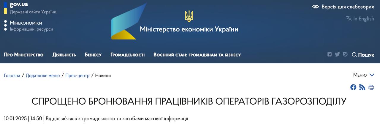 The employees of the gas industry will receive exemption from mobilization, - Cabinet of Ministers