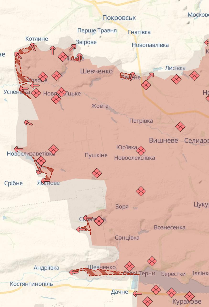 The Russian army continues its offensive in the areas of Pokrovsk and Kurakhove, according to the DeepState map.