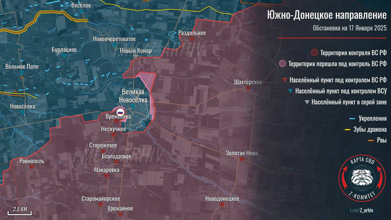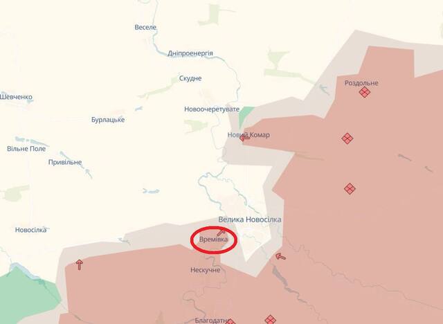 Russian military communities are posting videos of the Russian flag being installed over Vremivka. On their maps, the village is already completely under Russian control. On the DeepState map, it is partially captured.