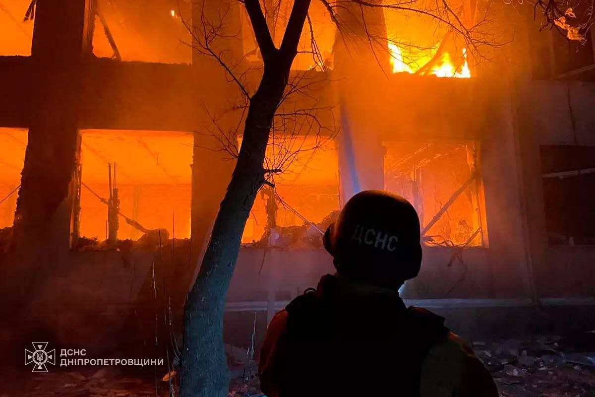 State Emergency Service showed footage of the aftermath of the GAB strike on a school in the Dnipropetrovsk region