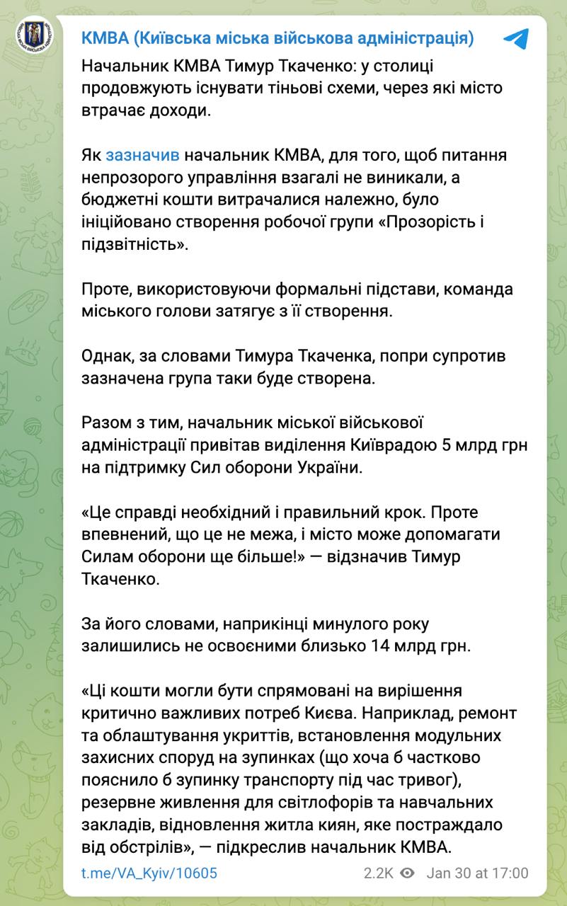 Tkachenko claims that "shadow schemes" are still operating in the capital, causing the city to lose significant revenues. In response, he initiated the creation of a working group called "Transparency and Accountability." However, according to him, Klychko’s team is delaying the launch of this group, using formal grounds.