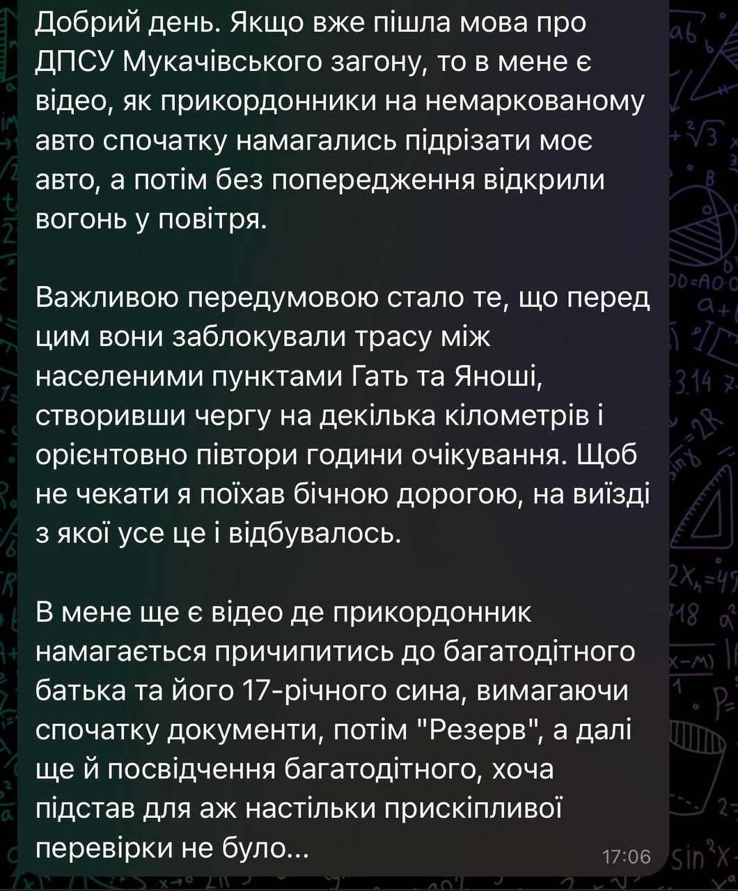 The Mukachevo border guards stop civilian vehicles with bursts of automatic gunfire – journalist Hlahola