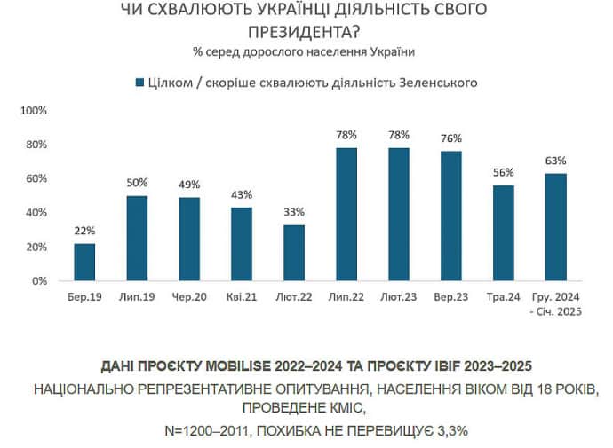 Sociologists noted that the support level is close to the level of trust in Zelenskyy, but they are not entirely identical, as "one can approve of someone’s activities but not trust them."