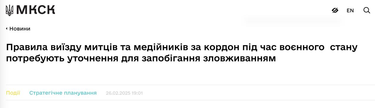 Starting from March 3, the Ministry of Culture of Ukraine will restrict travel abroad for journalists and cultural figures.