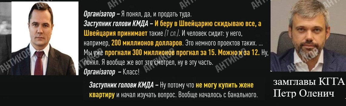 How much Kyiv land ended up in Komarnytskyi’s group is anyone’s guess. No one, not even NABU, will determine these sizes if, as per the old Ukrainian tradition, the case doesn’t fall apart. For which there are reasonable suspicions. But the theft scale can be assumed based on at least an excerpt from a NABU recording, where KCSA deputy head Petro Olenych tells Denys Komarnytskyi how he sends money to Switzerland: "We’ve already sent 300 million dollars for 15%." It refers to money being channeled through some conversion center at 15%. Interesting - will NABU search for this "conversion center"? After all, Olenych wasn’t its only client; a lot of interesting things can surely be found there.
