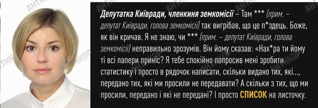 NABU’s tapes further discuss the details of the land commission’s work, giving the impression that the commission is run not by Mykhailo Terentyev, but by Olena Marchenko.