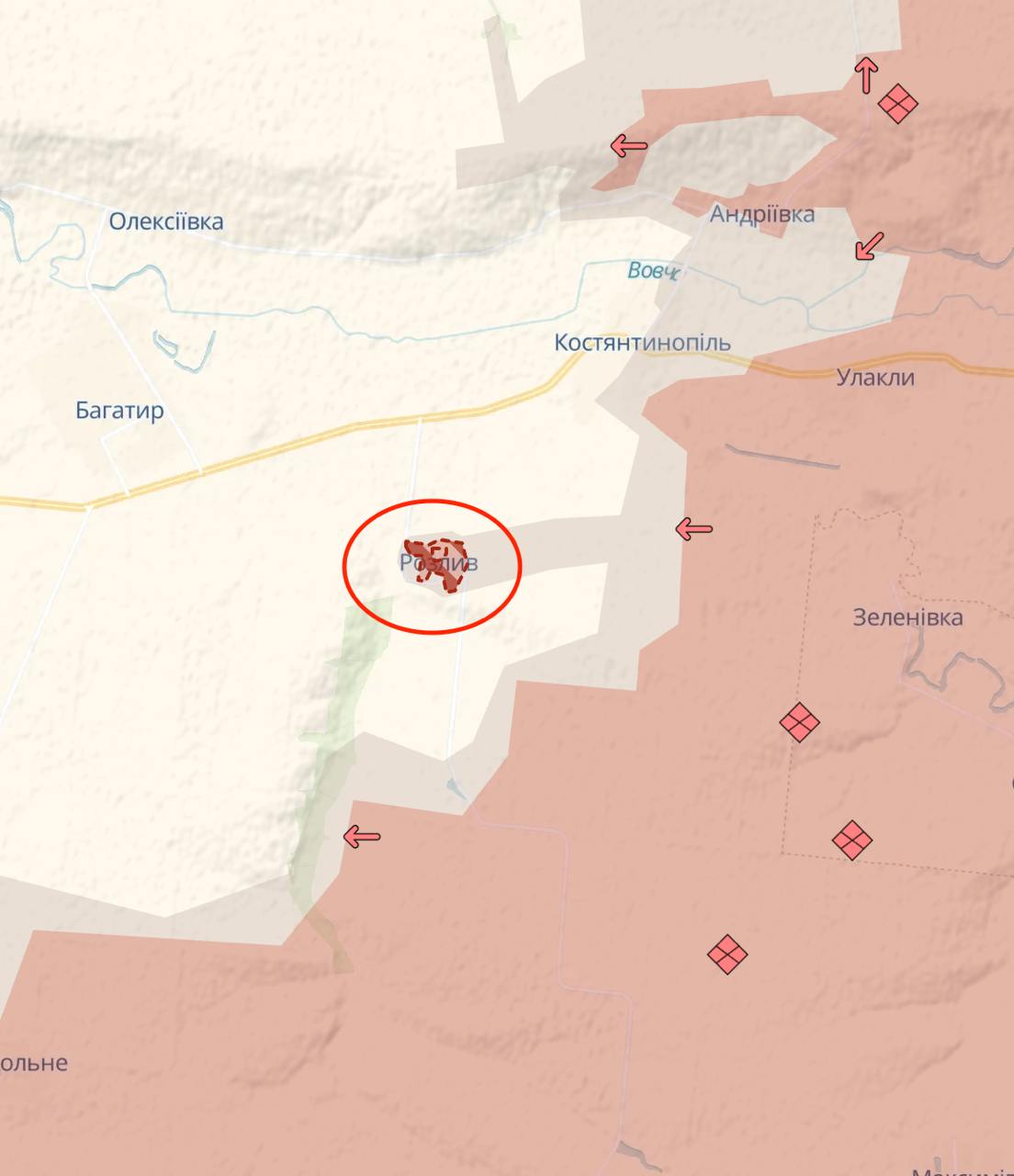 The analytical project DeepState confirmed that Russian troops have captured most of the village of Rozlyv in the Donetsk region, located southwest of Kurakhove.