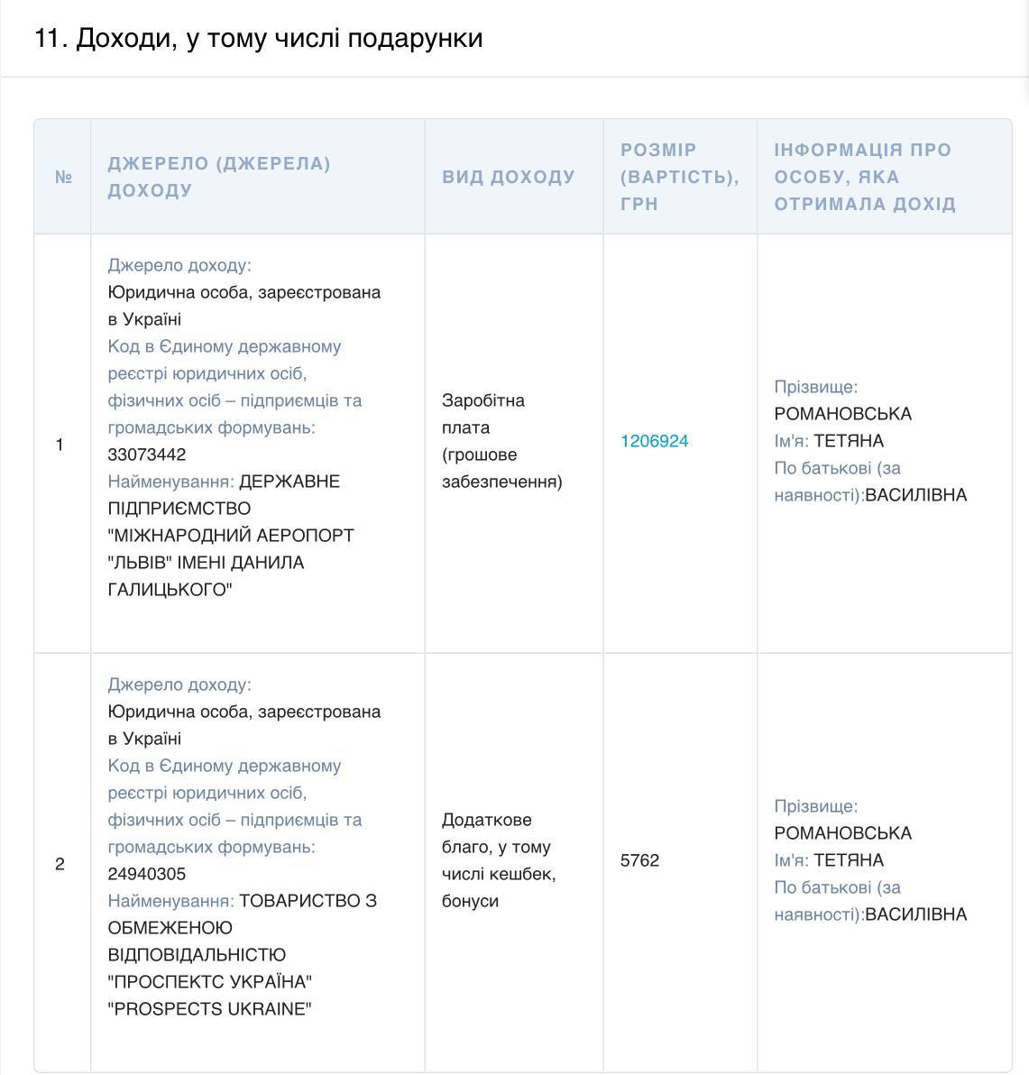 Topics: Tetyana RomanivskaSalaryDeclarationAirportLviv