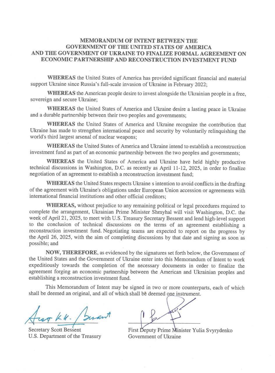 The Cabinet of Ministers published the text of the memorandum on minerals