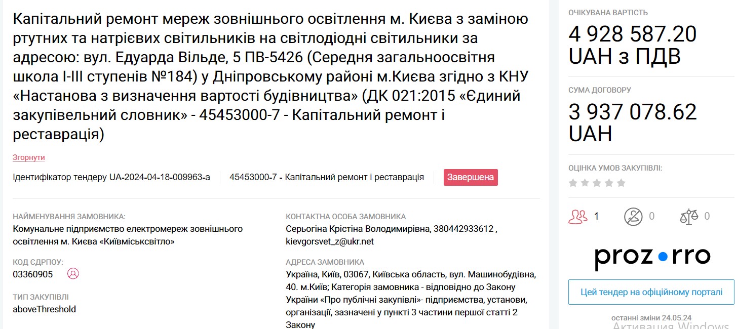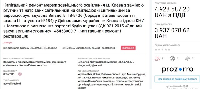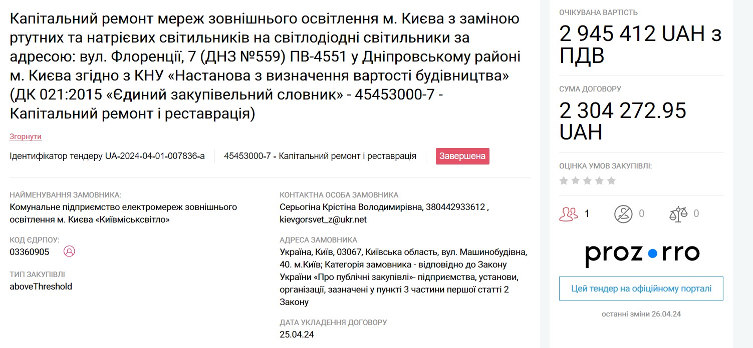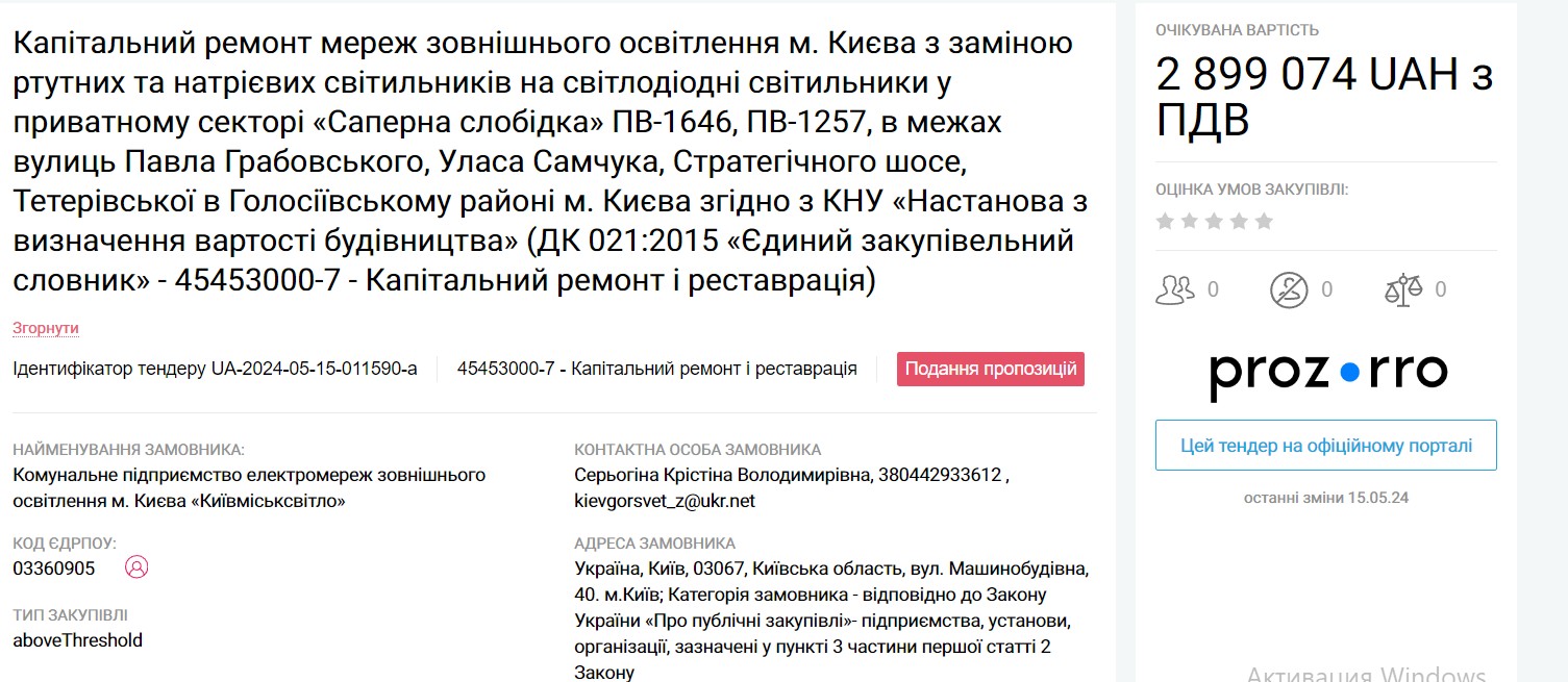 All these tenders have already been completed. However, it is easy to find tenders where ME "Kyivmisksvitlo" is still actively receiving applications.