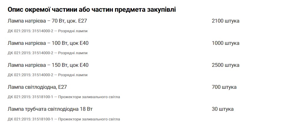 Thus, the ME "Kyivmisksvitlo" regularly announces multi-million tenders for street lighting repairs, replacing mercury and sodium street lamps with LED ones.
