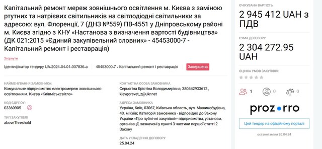 Interestingly, the same company often wins tenders from "Kyivmisksvitlo". This was discovered from the tenders published on the Prozorro public procurement website.