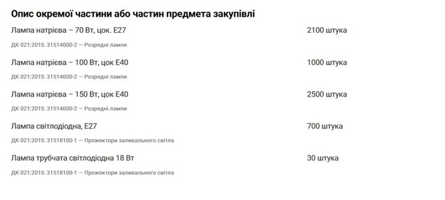 There are also tenders for lamp replacement at school №184 on Eduard Vilde, 5 costing 3,937,078 hryvnias and for street lighting repairs with lamp replacements to LED at DNZ №192 on Yaroslav Hasek Boulevard, 5 for 2,509,654 hryvnias.