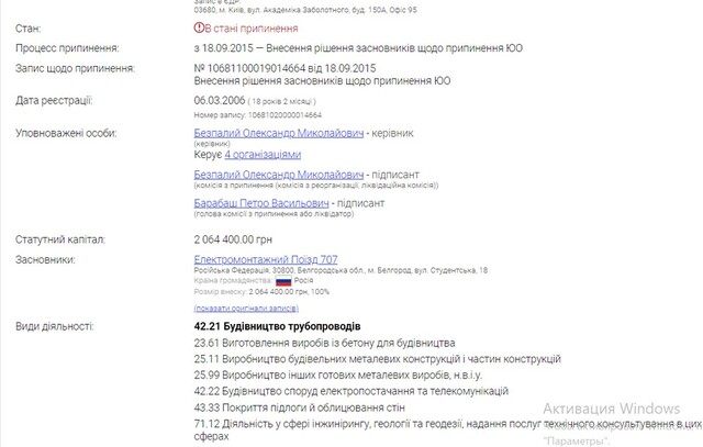 The director and beneficiary of which is Oleksandr Bezpalyi — the owner of several enterprises, among whose founders were also people from Russia.