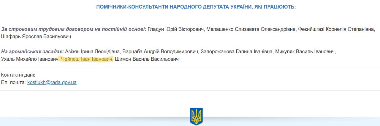 MP Anatoliy Kostyukh, who recently drew attention for purchasing a crossover for 2.06 million hryvnias, previously leased a car from Cheypesh’s company.