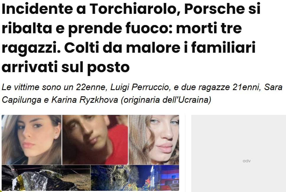 A Ukrainian refugee died in a car accident in Italy, reports Il Messagero.