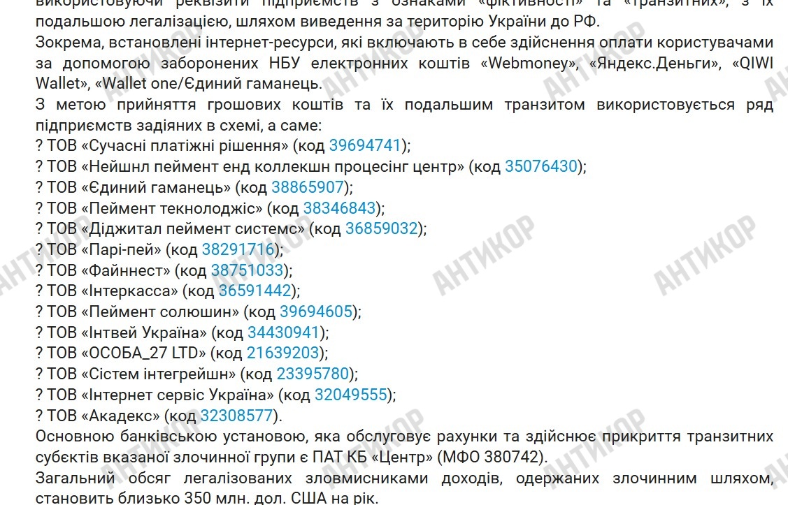 This material explicitly states that the Ukrainian branch of Wallet One still operates, and Oleksandr Serdyuk’s schemes are not limited to simple tax evasion—Ukrainian money continues to flow into the Russian Federation.