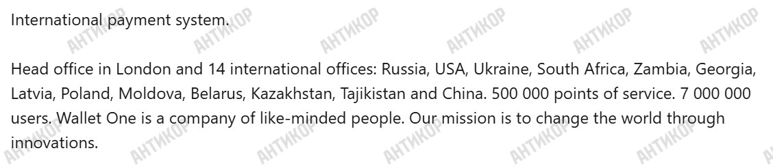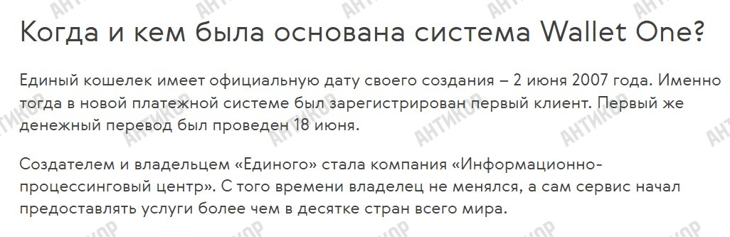 Interestingly, Russian sectorial websites list the founder of Wallet One as the Russian company "Information Processing Center."