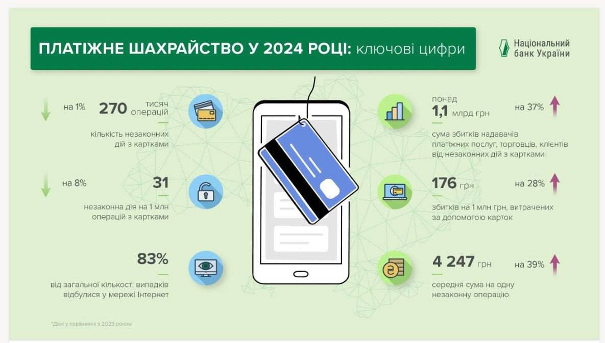 Ukrainians lost over a billion hryvnias from cards in 2024, — NBU
