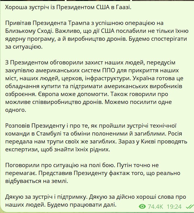 "Ukraine is ready to acquire this equipment and support American arms manufacturers. Europe can provide assistance. The possibility of joint drone production was also discussed. We can strengthen each other," Zelenskyy reported.