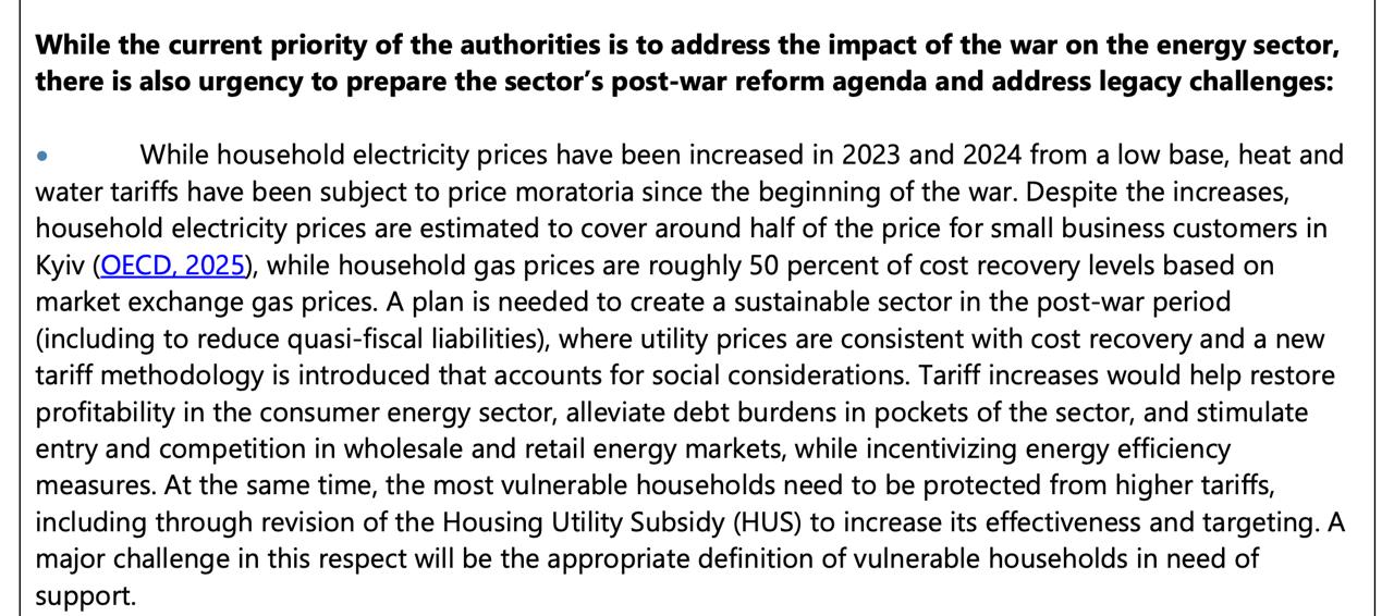 Therefore, as the IMF claims, Ukraine needs to develop a plan to raise utility tariffs to a level where they cover costs while taking social aspects into account.