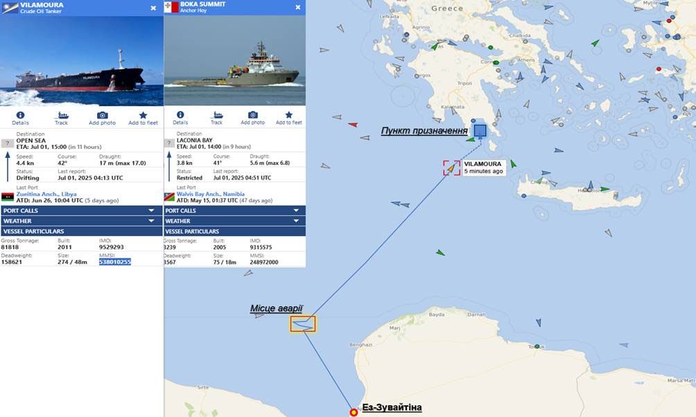 On June 27, a tanker named Vilamoura from the shadow fleet of the aggressor country Russia exploded in the Mediterranean Sea, carrying crude oil.