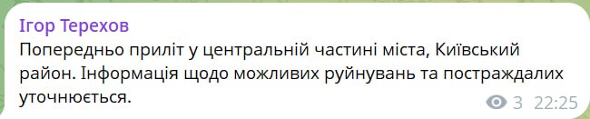 In Kharkiv, there’s a new strike in the center, now in the Kyivskyi district, said Mayor Terekhov.