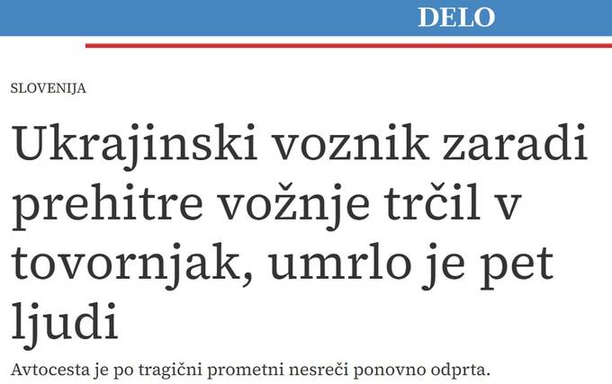 On a highway in Slovenia, five people died as a result of an accident, four of whom, according to preliminary information, were Ukrainian citizens.