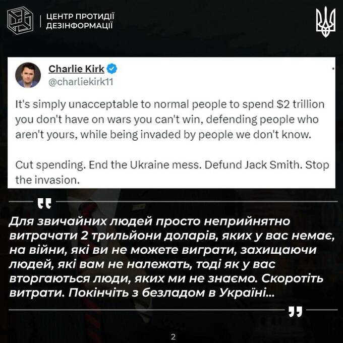 Українська влада піддала критиці трампіста Чарлі Кірка, в якого сьогодні стріляли у США.