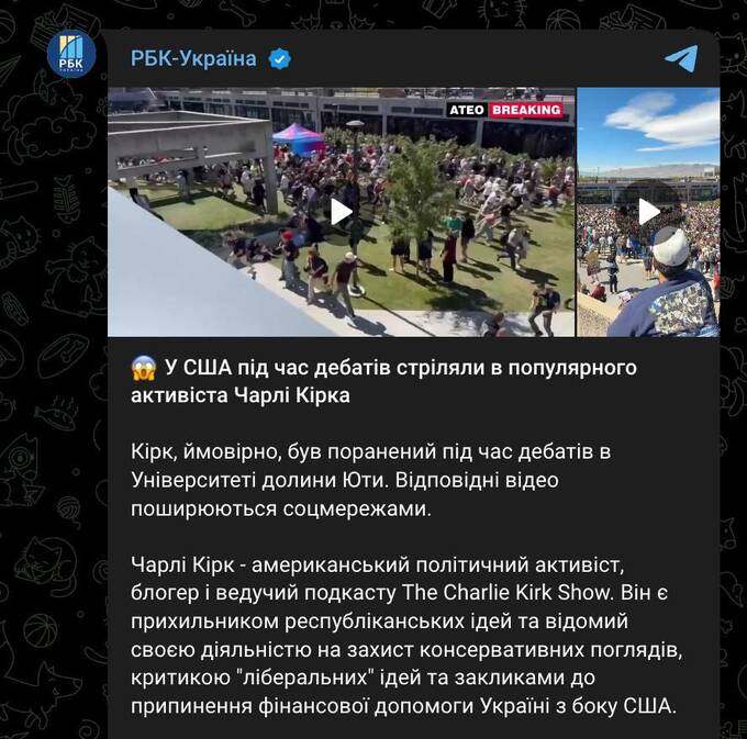 Українські пабліки та ЗМІ, висвітлюючи сьогоднішній замах на Кірка, також відзначили його «антиукраїнські» висловлювання.