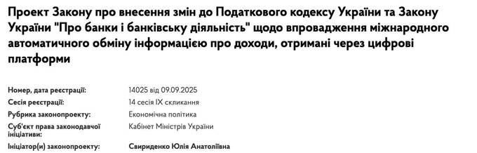 The draft law was submitted to the Verkhovna Rada by Prime Minister Svyrydenko.