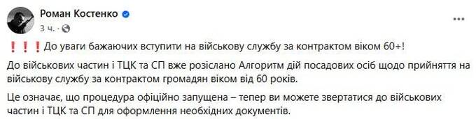 Citizens over the age of 60 have been granted the right to serve in the Armed Forces of Ukraine