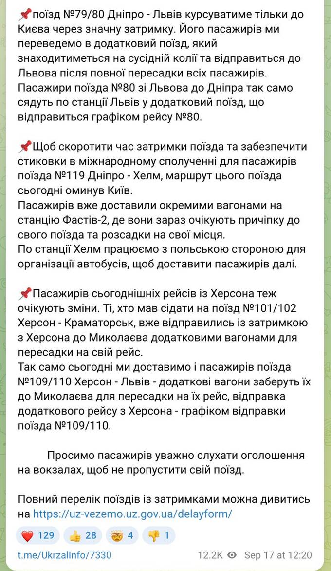 Про це інформує "Укрзалізниця".