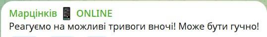 Ivano-Frankivsk Mayor Martsinkiv warns of a possible massive attack tonight.