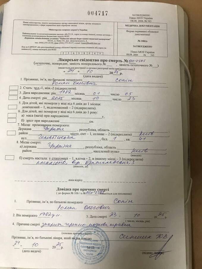 The deceased Roman Sopyn at the Kyiv TRC received an injury from a blunt object, - lawyer