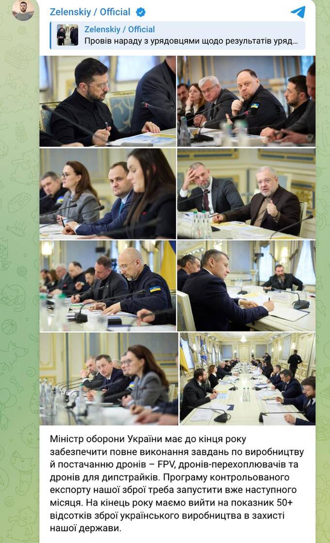 «The Minister of Defence of Ukraine is obliged to ensure the completion of all tasks related to the production and supply of drones – FPV, interceptor drones, and long-range strike drones – by the end of the year. The program for controlled export of our weapons must be launched next month. By the end of the year, we must achieve a target of over 50 percent of weapons of Ukrainian production in ensuring the defence of our country,» the president stated.