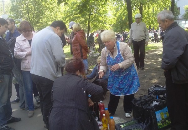 А от у сквері навіть у будній день яблуку ніде впасти. Я нарахувала більше 340 продавців. «Податок» коливається у межах 5-50 грн, залежно від продукції та площі, яку займає продавець: що дорожчий товар, то більша «такса».