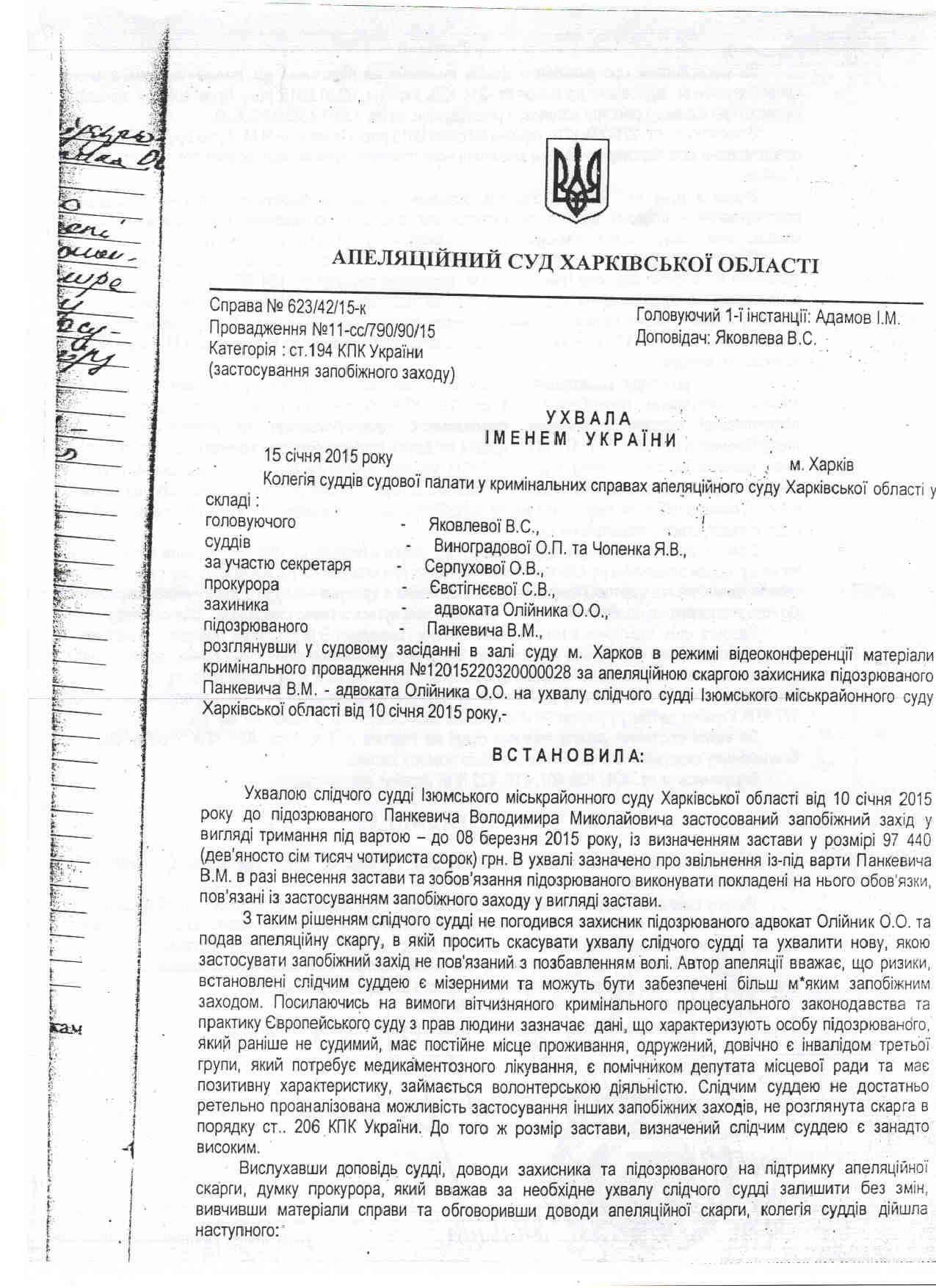 Про це свідчать матеріали судової справи за обвинуваченням Панкевича Володимира: