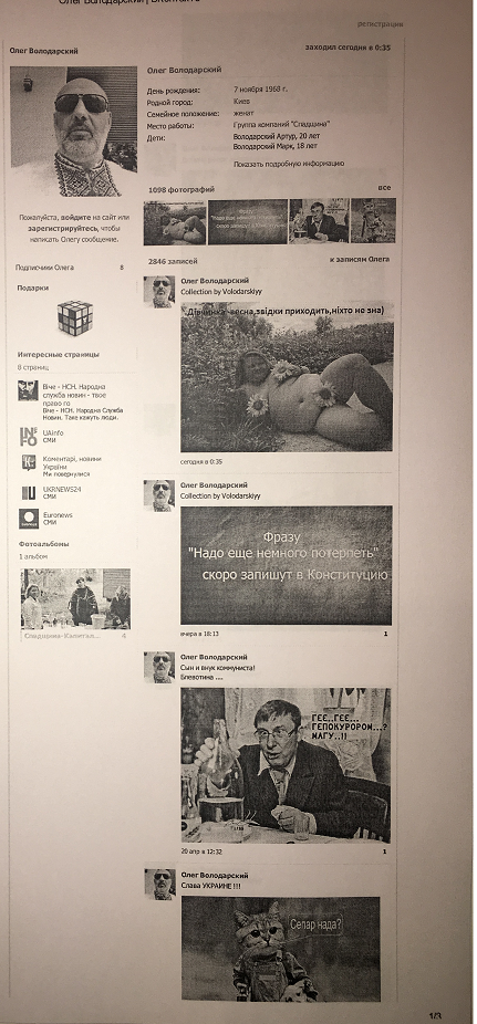 Все знают, что мошенники – это циничные люди со странными взглядами на жизнь. Вот и Олег Эдуардович ничем не хуже, чем другие подобные «люди», и тоже имеет специфические вкусы, о которых не боится рассказывать окружающим. А именно исходя из его страниц в социальных сетях – сразу обращаешь внимание на то, что «уважаемый» адвокат является ярым последователем радикального монархического движения, и особенно неравнодушен к «Правому сектору», да и информационное содержание его страниц не менее удивляет посетителей.