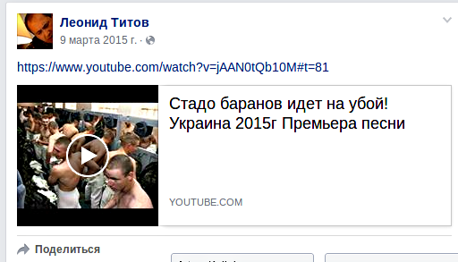 Значкова обращает внимание на две вещи. В своем Facebook артист разместил ролик. Основной видеоряд этого ролика — похороны наших ребят, украинских военных. А название этого ролика — «стадо баранов идет на убой».