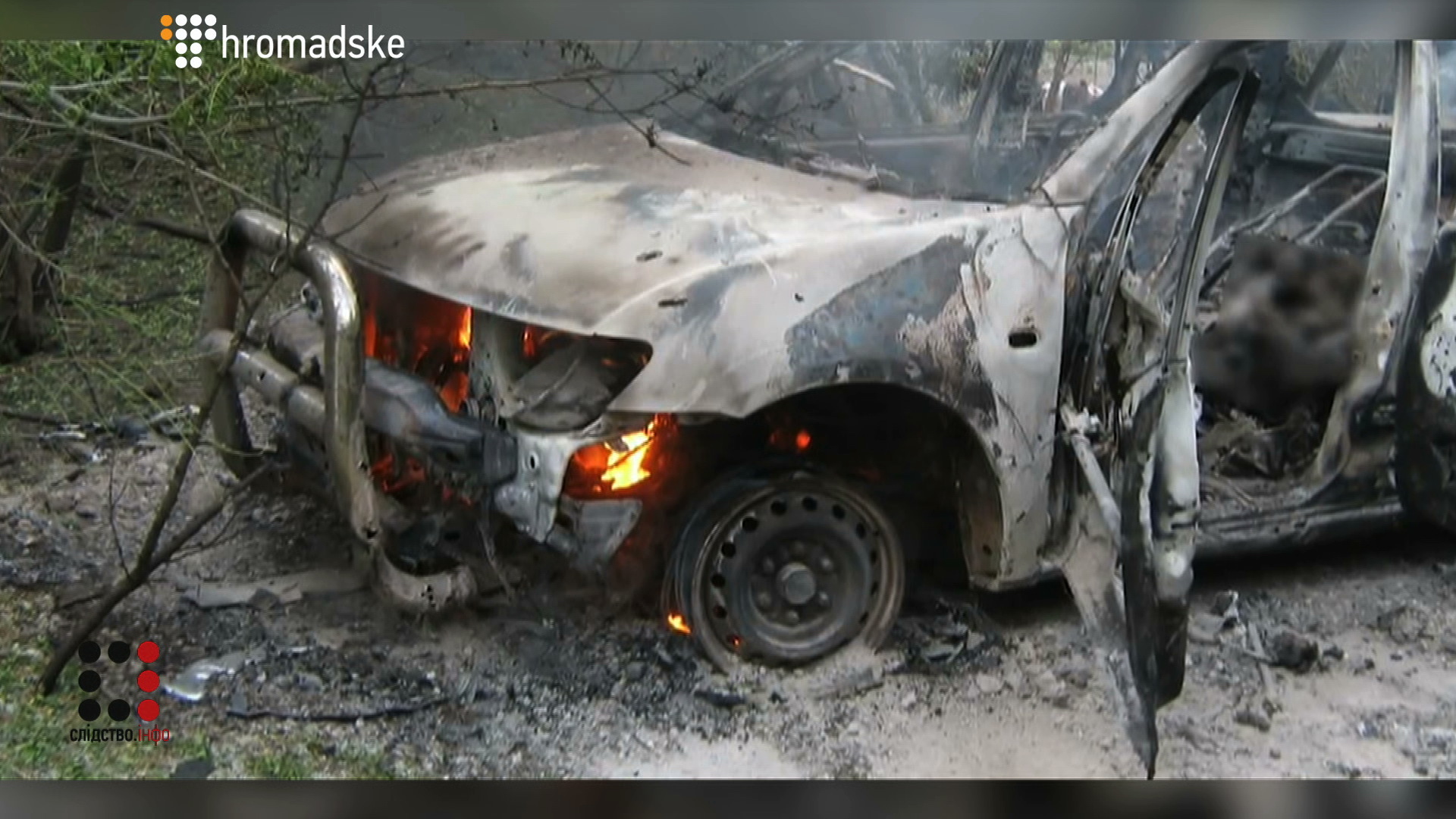 Автівка Ендрю їхала з тієї сторони. Повернула ліворуч і потрапила під вибух. Ось саме в тому місці, де стоїть інша машина. До речі, це та сама модель, але інший колір.