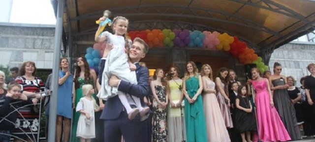 Правда, самих выпускников это мало волновало. Парни красовались в черных костюмах с бабочками, а девушки - в дорогих вечерних платьях, расшитых камнями и страусиными перышками за десятки тысяч