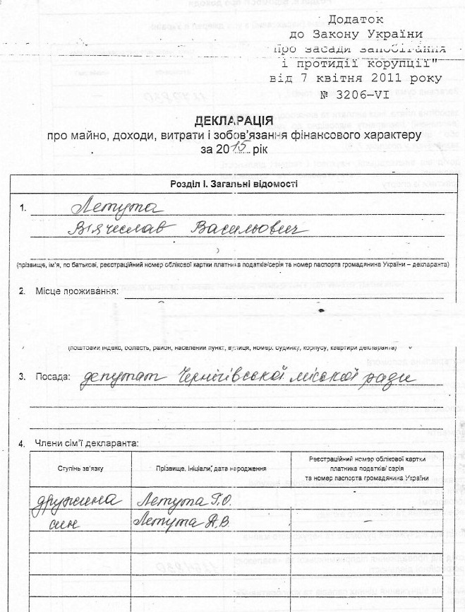 Цю нерухомість – будинок і землю – депутат не вказав у своїй декларації про доходи за 2015 рік. У ній Летута зазначив, що він та його сім’я взагалі не володіють жодним нерухомим майном і не мають землі.